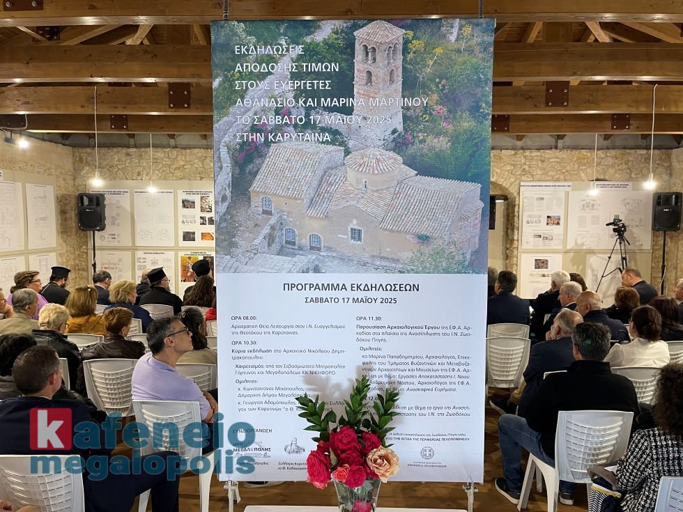 To Σάββατο 17 Μαΐου ο Δήμος Μεγαλόπολης και ο ο Σύλλογος των Καρυτινών «ο Θ. Κολοκοτρώνης», διοργάνωσαν εκδήλωση απόδοσης τιμών στους Ευεργέτες του Δήμου Μεγαλόπολης Μαρίνα και Αθανάσιο Μαρτίνο.