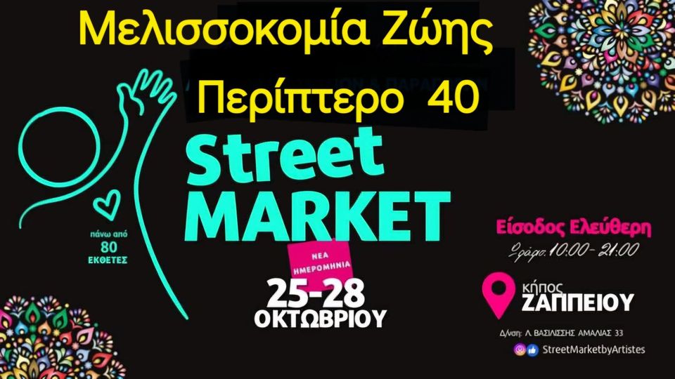 Η Μελισσοκομεία ΖΩΗΣ συμμετέχει στην έκθεση Street Market by ARTistes που γίνεται στο Ζάππειο από 25 έως 28 Οκτωβρίου.