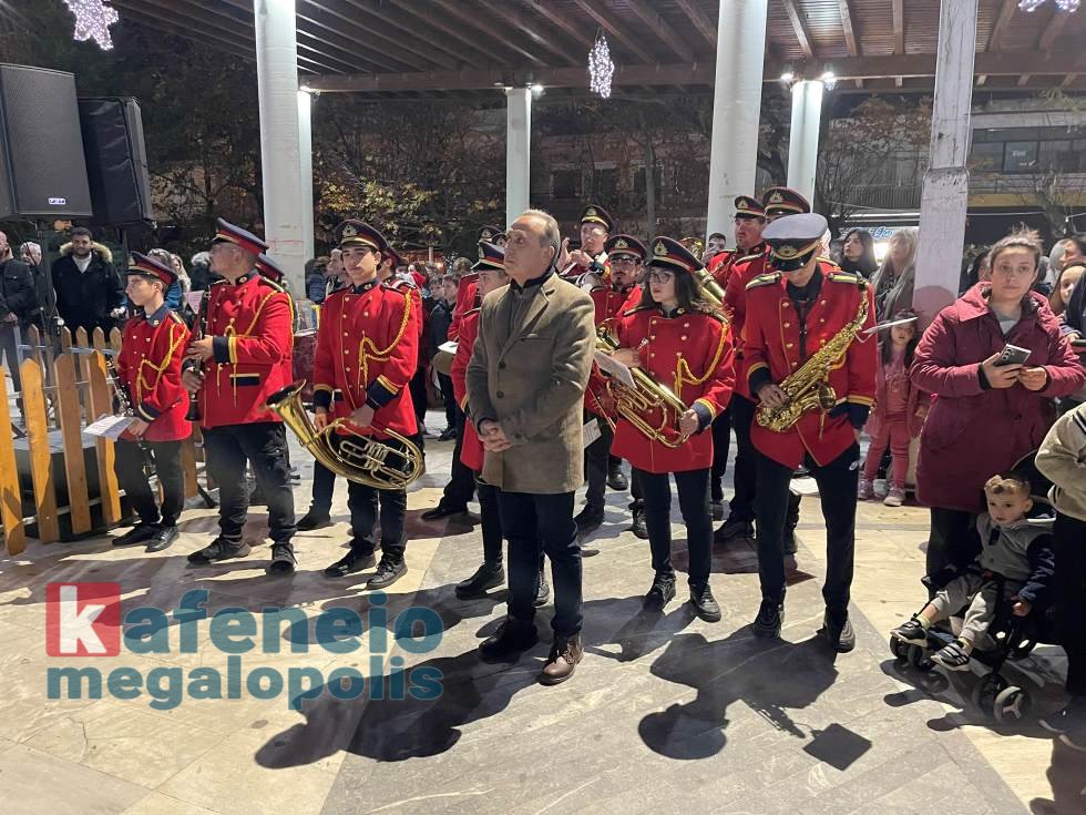 Η Φιλαρμονική Μεγαλόπολη έπαιξε γιορτινές μελωδίες και ο Δήμαρχος Μεγαλόπολης Κώστας Μιχόπουλος ευχήθηκε σε όλους χρόνια πολλά και καλή χρονιά.