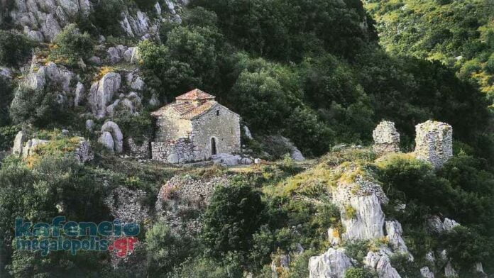 Η  Θεία Λειτουργία πραγματοποιείται μετά από σχετική άδεια της Εφορίας Αρχαιοτήτων της Αρκαδίας, την οποίαν και ευχαριστούμε, μια και ο Ναός είναι χαρακτηρισμένος ως σημαντικό Μεταβυζαντινό Μνημείο, έχει πρόσφατα αναστηλωθεί στα πλαίσια του προγράμματος ΕΣΠΑ 2007 – 2013, και τυχαίνει της πλήρους προστασίας από τις αρμόδιες Αρχαιολογικές Αρχές.    Πρόκειται για δικιόνιο, σταυροειδώς εγγεγραμμένο με τρούλο Ναό, με δύο εξαιρετικής τέχνης μεσοβυζαντινά  μαρμάρινα κιονόκρανα, πιθανότατα σε δεύτερη χρήση, από τον περικαλλή Ναό του Αγίου Ανδρέα του Κάστρου, ο οποίος ως ορθόδοξος Ναός κατεδαφίστηκε από τους Φράγκους κατακτητές.