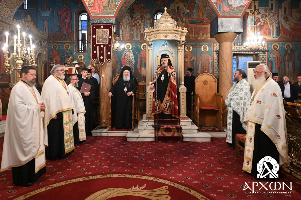 Του Πολυαρχιερατικού Εσπερινού χοροστάτησε ο εορτάζων Μητροπολίτης Γόρτυνος και Μεγαλοπόλεως κ. ΝΙκηφόρος, συγχοροστατούντων του Σεβ. Μητροπολίτη Χαλκίδος κ. Χρυσοστόμου και των Θεοφιλ. Επισκόπων Τεγέας κ. Θεοκλήτου και Σκοπέλου κ. Νικοδήμου.