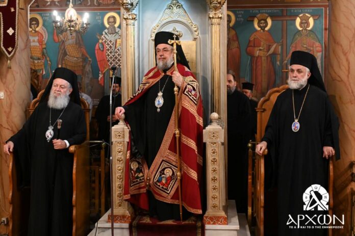 Του Πολυαρχιερατικού Εσπερινού χοροστάτησε ο εορτάζων Μητροπολίτης Γόρτυνος και Μεγαλοπόλεως κ. ΝΙκηφόρος, συγχοροστατούντων του Σεβ. Μητροπολίτη Χαλκίδος κ. Χρυσοστόμου και των Θεοφιλ. Επισκόπων Τεγέας κ. Θεοκλήτου και Σκοπέλου κ. Νικοδήμου.