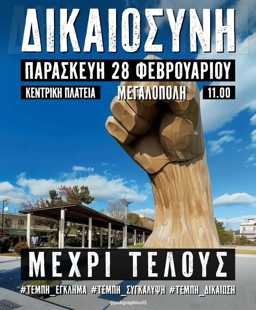 Ο Σύλλογος Νέων Μεγαλόπολης στέκεται στο πλευρό των συγγενών των θυμάτων και στα δίκαια αιτήματά τους για Δικαιοσύνη και απόδοση ευθυνών σε κάθε ένοχο όσο ψηλά και αν βρίσκεται.