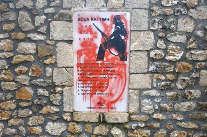 Η ΚΟΒ Μεγαλόπολης του ΚΚΕ καταγγέλλει τη θρασύδειλη ενέργεια των βανδάλων που αμαύρωσαν το μνημείο.