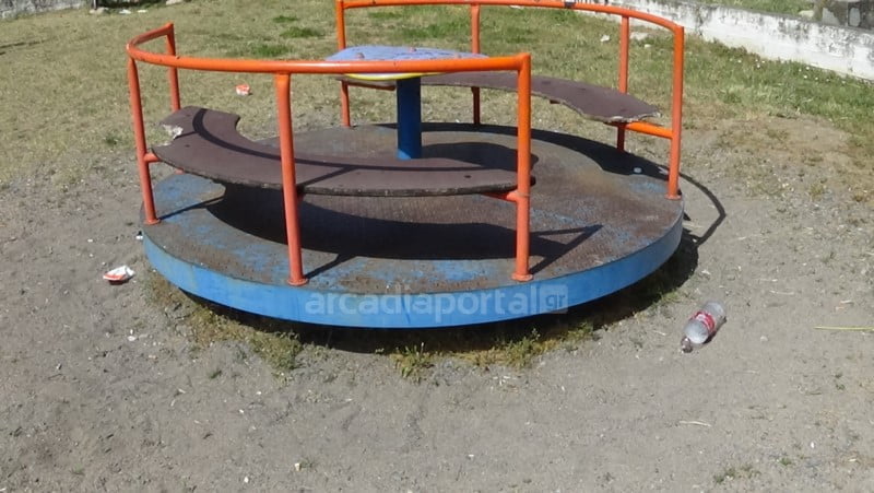 Δύο από τις παιδικές χαρές που βρίσκονται στο κέντρο της Μεγαλόπολης είναι άκρως ακατάλληλες, με τον εξοπλισμό να είναι πεπαλαιωμένος, κατεστραμμένος, με αιχμηρές γωνίες, σπασμένα σκαλοπάτια και σίδερα να προεξέχουν σε κάθε παιχνίδι.
