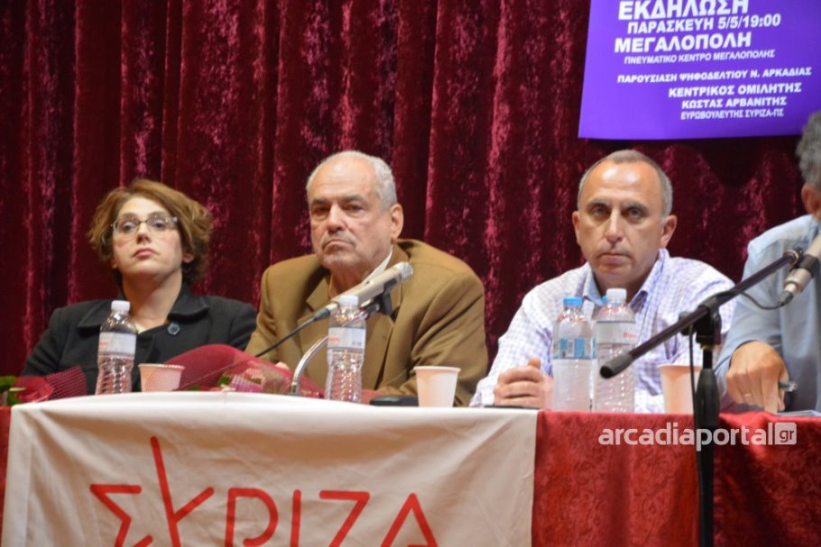 Στην εκδήλωση κεντρικός ομιλητής ήταν ο ευρωβουλευτής Κώστας Αρβανίτης ενώ έγινε και η παρουσίαση των υποψήφιων Βουλευτών Αρκαδίας , Αντωνία Γιαννούλη, Διονύσιο Παπαδόπουλο, Γεώργιο Παπαηλιού, Χρήστο Στάικο και Αθανασία Φιλοπούλου. Στην εκδήλωση ήταν επίσης η συντονίστρια νομαρχιακής Αρκαδίας Ευαγγελία Μαρινάκου και ο Μιχάλης Υδραίος μέλος της κεντρικής επιτροπής του κόμματος και υπεύθυνος για τις οργανώσεις της Πελοποννήσου.