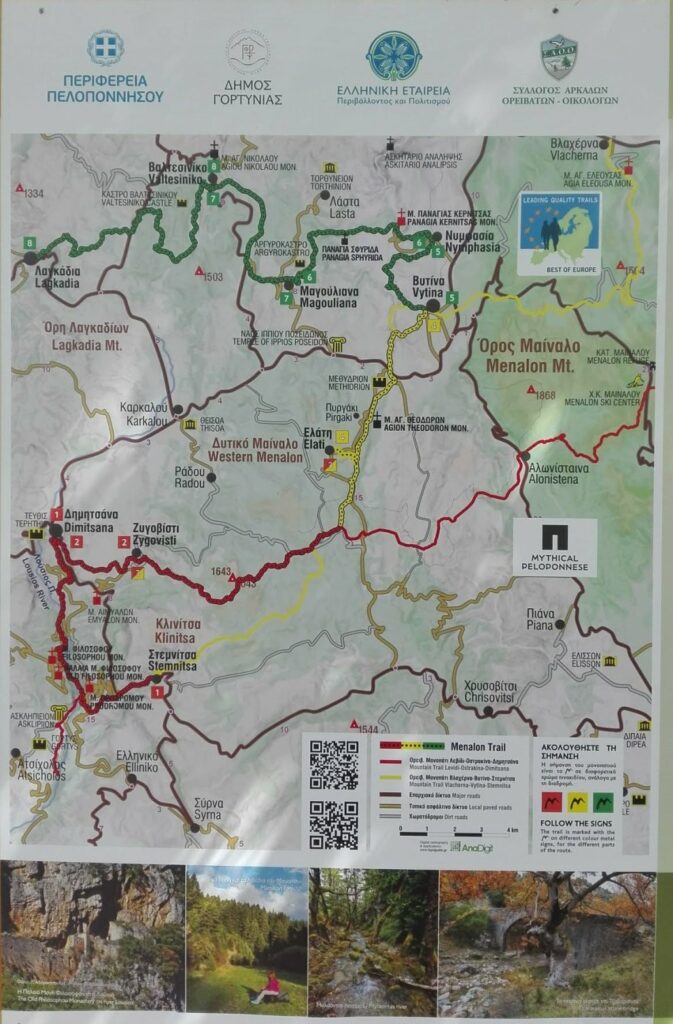 Μια πολύ όμορφη διαδρομή έκαναν με πεζοπορία ο Κώστας Μπελόκας , ο Γεώργιος Δρακόπουλος και ο Άγγελος Κώτσαρης, ξεκινώντας απο το Ελληνικό Αρκαδίας, την Αρχαία Γόρτυνα, στην συνέχεια μπήκαν στο μονοπάτι Menalon Trail, την Μονή Αγ. Ιωάννη Προδρόμου, το Κρυφό σχολείο, την Μονή Παναγίας Φιλοσόφου και τελείωσαν την διαδρομή τους στο Μουσείο Υδροκίνησης στην Δημητσάνα. Η συνολική απόσταση που διένυσαν ήταν 13 χλμ.