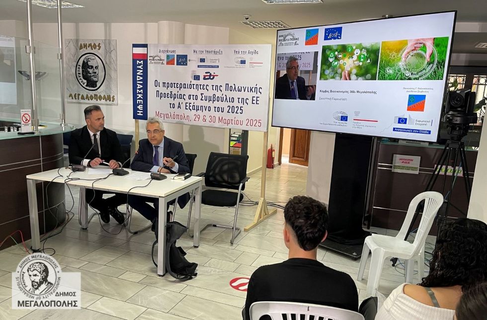 Στο πλαίσιο της συνδιάσκεψης, με θέμα «Οι Προτεραιότητες της Πολωνικής Προεδρίας στο Συμβούλιο της ΕΕ το πρώτο εξάμηνο του 2025», που γίνεται στο Δημαρχείο Μεγαλόπολης , το Σάββατο 29 Μαρτίου πραγματοποιήθηκε μια παράλληλη εκδήλωση, όπου  μαθητές του Γυμνασίου Μεγαλόπολης, του Γενικού Λυκείου Μεγαλόπολης και του ΕΠΑΛ Μεγαλόπολης, μίλησαν με τον Πολωνό Πρέσβη , τον Υφυπουργό Εσωτερικών, τους Ευρωβουλευτές, Βουλευτές και άλλους καλεσμένους της συνδιάσκεψης και έθεσαν προτάσεις και προβληματισμούς  για την απολιγνιτοποίηση και την ανάδειξη των προβλημάτων της περιοχής.