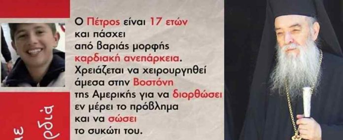 Παρακαλούμε να έλθετε την προσεχή Πέμπτη 14 Νοεμβρίου στις 5 το απόγευμα, στον Ναό της Παναγίας Μυρτιδιωτίσσης στο Επισκοπείο Μεγαλόπολης, όπου θα τελέσουμε Παράκληση στην Παναγία Υπέρ της υγείας του αγαπητού σε όλους μας 17χρονου Πέτρου, μαθητή της πόλης μας, που σε λίγες μέρες για την θεραπεία του, θα ταξιδέψει στην Αμερική.
