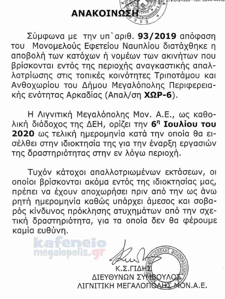 Αντί αυτού λάβαμε το τελεσίγραφο της ΔΕΗ που ζητά να παραδώσουμε το χωριό μας μέχρι τις 6 Ιουλίου.