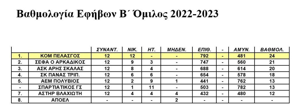 Το τελευταίο εξ αναβολής παιχνίδι έδωσε το εφηβικό τμήμα του ¨ΠΕΛΑΣΓΟΥ¨ στην Τρίπολη με το αντίστοιχο του ¨ΑΡΚΑΔΙΚΟΥ¨ αργά το βράδυ της Τετάρτης 29/3/2023.