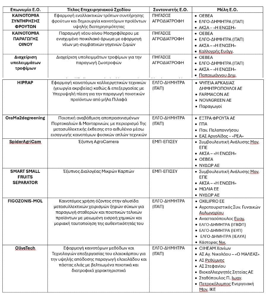 Την Παρασκευή 4 Απριλίου 2025, στις εγκαταστάσεις της ΟΕΒΕΑ (Καλαμάτας 113, 22132 Τρίπολη), θα γίνει παρουσίαση των αποτελεσμάτων και μεταφορά τεχνογνωσίας από τις Επιχειρησιακές Ομάδες (Ε.Ο.) των παρακάτω Πράξεων που συνδέονται άμεσα ή έμμεσα με την Περιφέρεια Πελοποννήσου: