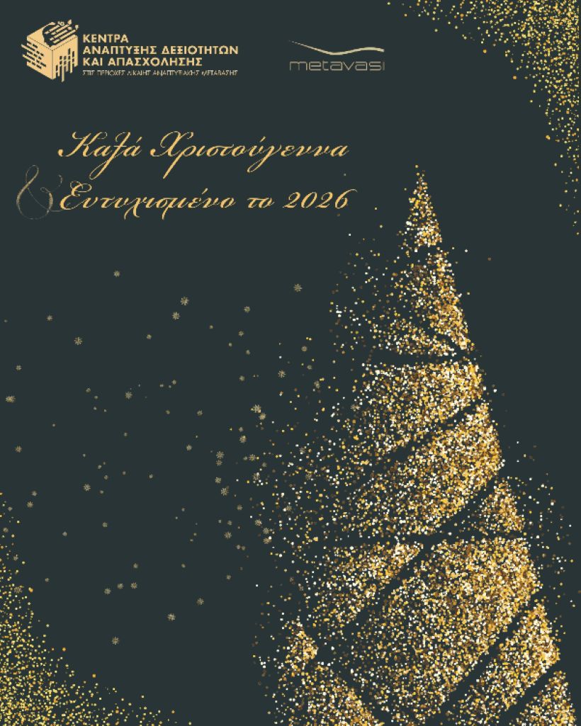 Το Κέντρο Ανάπτυξης Δεξιοτήτων και Απασχόλησης, σας αποστέλλει τις θερμότερες ευχές του για Καλά Χριστούγεννα και ένα Δημιουργικό, Υγιές και Ειρηνικό Νέο Έτος.