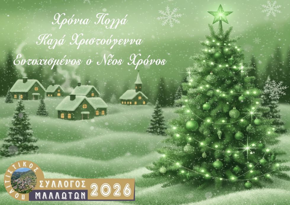 Η Πρόεδρος και το Δ.Σ. του Πολιτιστικού Συλλόγου Μαλλωτών σας στέλνουν τις πιο θερμές ευχές τους, αυτές οι γιορτές να πλημμυρίσουν τις ψυχές και τα σπίτια μας με φως, ζεστασιά και χαρά.