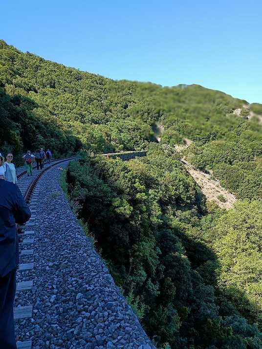 Mε πολύ μεγάλη συμμετοχή (πάνω από 200 ατόμων) ολοκληρώθηκε την Κυριακή 1 Ιουνίου 2025 στο Ρούτσι Μεγαλόπολης η εκδήλωση για τον σιδηρόδρομο. Τους προηγούμενους δυο μήνες προηγήθηκε ο μεγάλος καθαρισμός της γραμμής σε μήκος μερικών χιλιομέτρων από την είσοδο του φαραγγιού Μαρμαριάς – Ανεμοδουρίου έως το Ρούτσι. Η γραμμή ιδιαίτερα από την περιοχή Ανεμοδουρίου και νοτιότερα είχε μεταβληθεί σε αδιαπέραστο δάσος και σε αυτό το τμήμα είχαν δράσει με αποφασιστικότητα γύρω στους 30 εθελοντές για τη διάνοιξή του. Έτσι την Κυριακή κατέστη δυνατή η διέλευση πολλών δεκάδων πεζοπόρων οι οποίοι προέρχονταν κυρίως από την Αρκαδία αλλά κι από άλλα μέρη (Πάτρα, Ναύπλιο, Καλαμάτα, Αθήνα κλπ.) Περπατώντας στη γραμμή πέρασαν μέσα από το εντυπωσιακό φαράγγι θαυμάζοντας τις αριστοτεχνικά κατασκευασμένες γέφυρες, τα κτήρια και τη μεγάλη γαλαρία και ανάμεσα στην ανθισμένη μαγευτική οργιάζουσα ανοιξιάτική φύση, αγναντεύοντας μετά από ψηλά την ευρύτερη περιοχή της Μεγαλόπολης, έφτασαν στο Ρούτσι. Στην εκδήλωση συμμετείχαν κι ορισμένοι ποδηλατιστές που ξεκινήσανε με τα ποδήλατά τους από την Τρίπολη ενώ έγινε κι επίδειξη ενός τραινοποδήλατου (railbike) από την επιχείρηση που δραστηριοποιείται με αυτό το μέσο τουριστικά στην παλιά γραμμή στο τμήμα Μεγάρων – Κακιάς Σκάλας.