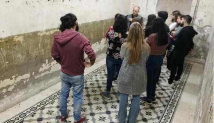 Οι μαθητές, φοιτητές και νέοι εργαζόμενοι που συμμετείχαν στον ιστορικό περίπατο είχαν την ευκαιρία να μπουν στα υπόγεια του δικαστικού μεγάρου Τρίπολης, που λειτούργησαν σαν φυλακές σε όλη τη δεκαετία του ’40 και έχουν στους τοίχους χειρόγραφα μηνύματα των κρατουμένων και μελλοθανάτων ειδικά την περίοδο 1944 και 1947 – 1949 που λειτούργησε το Έκτακτο Στρατοδικείο Τρίπολης. Επισημάνθηκε η ανάγκη για την άμεση συντήρηση αυτών των χώρων.