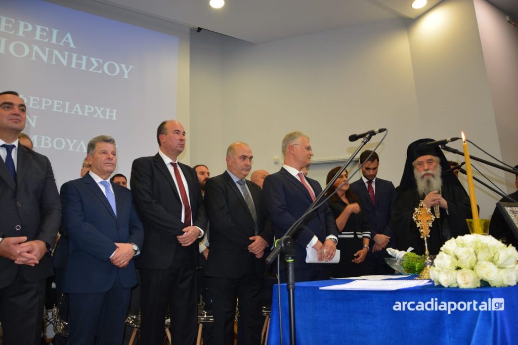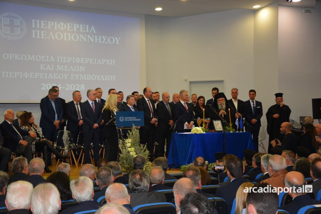 Αμέσως μετά τη θρησκευτική τελετή ο νέος περιφερειάρχης Πελοποννήσου ορκίστηκε με θρησκευτικό όρκο, καταχειροκροτούμενος, ενώ από το πλήθος ακουγόταν το «άξιος! άξιος!».