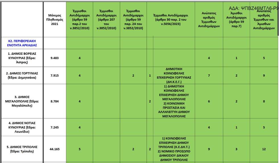 Έτσι, σύμφωνα με όλα τα παραπάνω, στον Δήμο Τρίπολης ο ανώτατος αριθμός των νέων αντιδημάρχων θα είναι εννέα, οι άμισθοι αντιδήμαρχοι θα είναι τρεις, δηλαδή ο ανώτατος αριθμός των αντιδημάρχων, έμμισθων και άμισθων, θα είναι δώδεκα, μετά την κατάργηση του ΝΠΔΔ Δήμου Τρίπολης αλλά και τη λύση της Κοινωφελούς Επιχείρησης.