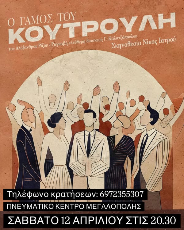 Η θεατρική Ομάδα Μεγαλόπολης παρουσιάζει για μια τελευταία φορά το θεατρικό έργο «Ο γάμος του Κουτρούλη» σε ελεύθερη διασκευή του Γιάννη Καλατζόπουλου και σκηνοθεσία του Νίκου Ιατρού.