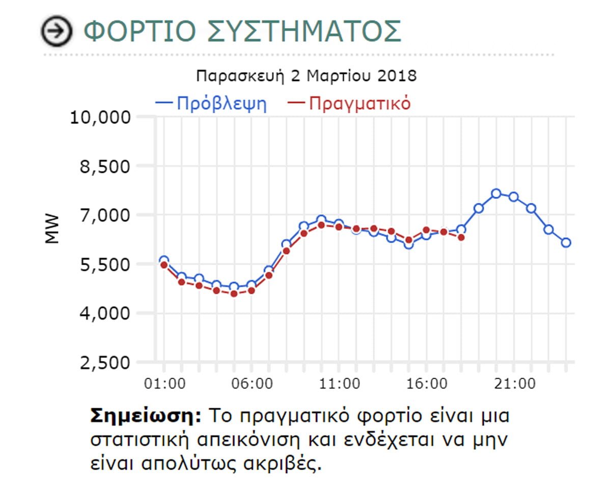 απλό: σύμφωνα με τα στοιχεία του ΑΔΜΗΕ, σήμερα Παρασκευή 2/3/2018 το φορτίο του διασυνδεμένου συστήματος ηλεκτροδότησης κυμαίνεται από 4.588,33 MW στις 5πμ (νυκτερινό ελάχιστο) μέχρι 7.650 MW στις 8μμ (βραδινή αιχμή). Η χώρα έχει εγκατεστημένα, στο διασυνδεμένο σύστημα και σύμφωνα με το ΛΑΓΗΕ, 2302 MW αιολικά, 230 MW μικρά υδροηλεκτρικά, 61 MW βιοαέριο-βιομάζα, 2094 MW Φ/Β και 351MW Φ/Β στις στέγες. Συνολικά 5038 MW από ΑΠΕ, οι οποίες μάλιστα είναι χρυσοπληρωμένες απ’ τους καταναλωτές, όπως μπορεί να διαπιστώσει εύκολα ο οποιοσδήποτε ρίχνοντας μια ματιά στο ύψος του ΕΤΜΕΑΡ στο δικό του λογαριασμό του ρεύματος.