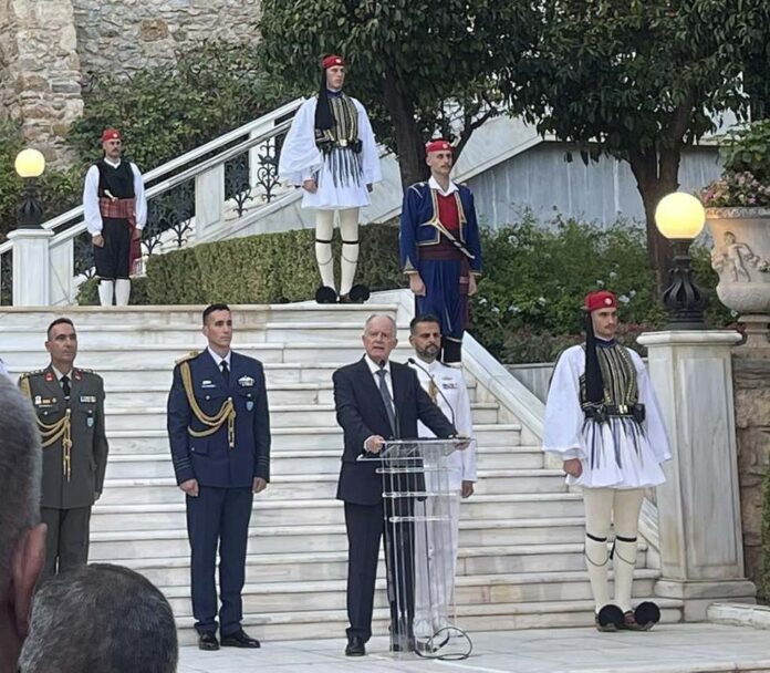 Η εκδήλωση ξεκίνησε με την ανάκρουση του Εθνικού Ύμνου και στη συνέχεια απηύθυνε ομιλία ο Πρόεδρος της Δημοκρατίας Κωνσταντίνος Τασούλας.