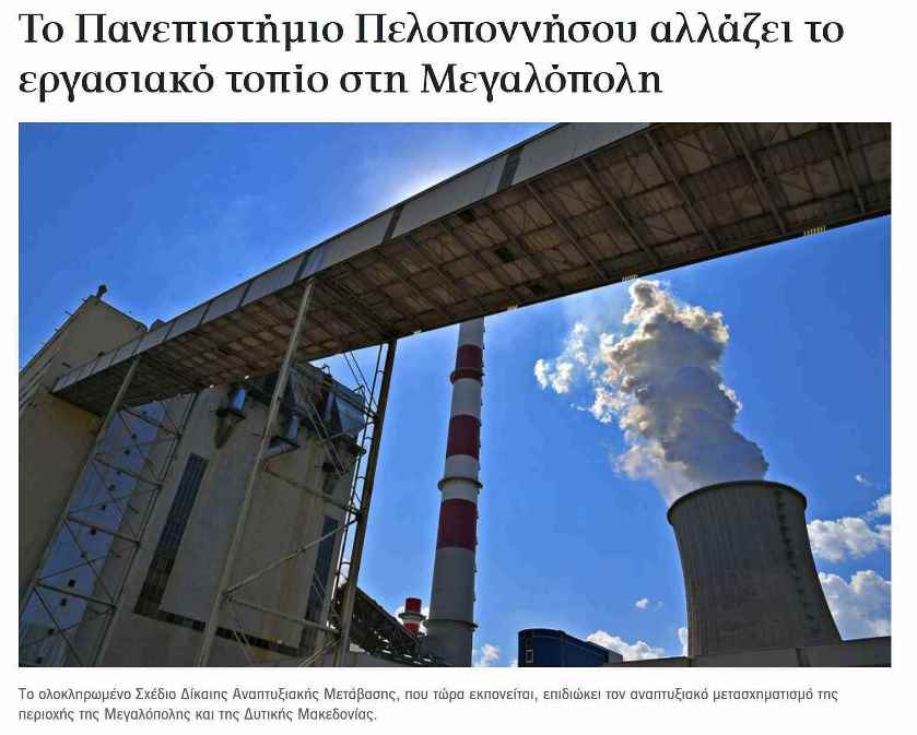 Το Πανεπιστήμιο Πελοποννήσου επομένως –που διαθέτει την τεχνογνωσία αλλά και την τοπική ευαισθησία να αφουγκρασθεί τις αγωνίες των κατοίκων– μπορεί να διαδραματίσει έναν καταλυτικό ρόλο για την παραγωγική αναζωογόνηση της ευρύτερης πληττόμενης περιοχής της Μεγαλόπολης και την προσέλκυση ενεργού ανθρώπινου δυναμικού. Και έτσι θα μπορέσουν να αξιοποιηθούν στο μέγιστο οι πολλαπλασιαστικές ευεργετικές επιπτώσεις αυτής της διασυνδεδεμένης δραστηριότητας, στην πορεία μετάβασης προς τη μετα-λιγνιτική εποχή.