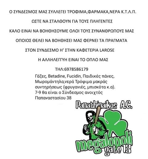 ΑρχικήΑΡΘΡΑΟ σύνδεσμος φιλάθλων Μεγαλόπολης Παναθηναϊκού συγκεντρώνει βοήθεια