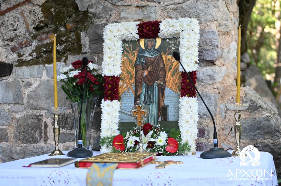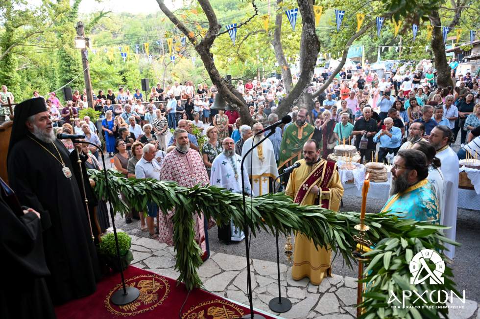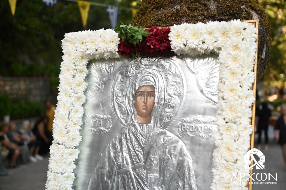 Ακολούθως, τον θείο λόγο κήρυξε ο Πανοσιολ. Αρχιμ. Χριστόφορος Παπαθανασίου, ο οποίος αναφέρθηκε στο θαύμα που αντικρίζει ο πιστός, βλέποντας το Ιερό Προσκύνημα της Αγίας, τον βίο και την συκοφαντία που υπέστη. Συνάμα τόνισε, την αγάπη του Χριστού προς τον άνθρωπο, ο οποίος για χάρη του θυσιάστηκε, σηκώνοντας την συκοφαντία, όπως και η εορταζομένη Αγίας Θεοδώρα. “Η σωτηρία προϋποθέτει πίστη και παράδοση στην φιλανθρωπία τη Θείας του αγάπης”, τόνισε χαρακτηριστικά. ” Η καρδιά της Αγίας φλεγόταν από την αγάπη του Χριστού και έβλεπε με τα μάτια της τον Χριστό να την κρατά από το χέρι και να την στεφανώνει”. Κλείνοντας, ευχήθηκε η Αγία Θεοδώρα να μας αξιώσει να εμπιστευτούμε τον Χριστό, ώστε να κατακτήσει τις καρδιές μας.