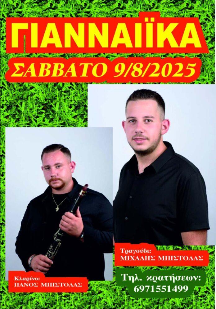 ΑρχικήΑΡΘΡΑΠανηγύρι στα Γιαννέϊκα το Σάββατο 9 Αυγούστου