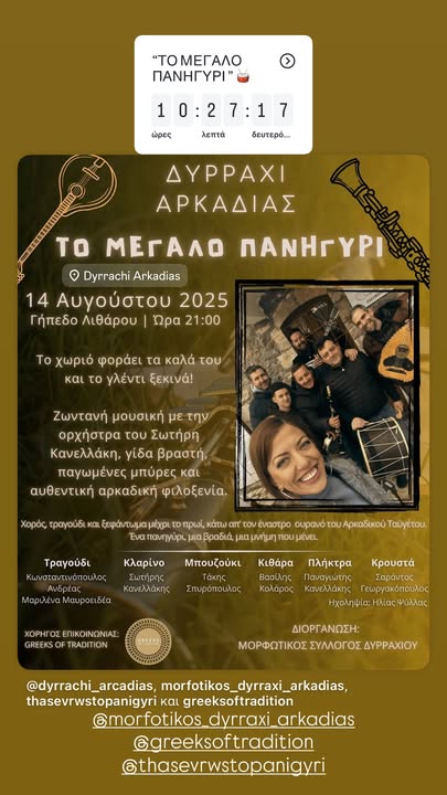 Ζωντανή μουσική με την ορχήστρα του Σωτήρη Κανελλάκη, παραδοσιακή γίδα βραστή, παγωμένες μπύρες και γλέντι μέχρι το πρωί!