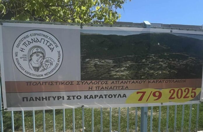 Ο Πολιτιστικός Εξωραϊστικός Σύλλογος Απανταχού Καρατουλαίων «Η Παναγίτσα», σας καλεί να τιμήσετε με την παρουσία σας το παραδοσιακό πανηγύρι για τον εορτασμό της Γέννησης της Θεοτόκου που θα πραγματοποιηθεί την Κυριακή 7 Σεπτεμβρίου 2025 και ώρα 20:30 στον αύλειο χώρο του Δημοτικού Σχολείου.