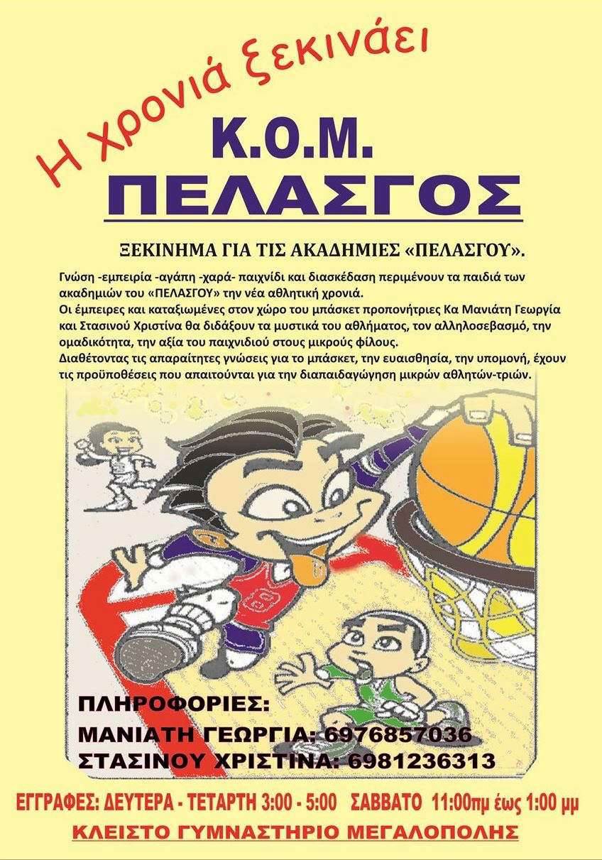 Ξεκίνησαν οι εγγραφές στις ακαδημίες του Πελασγού , γίνονται στο κλειστό γυμναστήριο της πόλης κάθε Δευτέρα-Τετάρτη από τις 15:00 έως τις 17:00 και το Σάββατο από τις 11:00 έως τις 13:00.