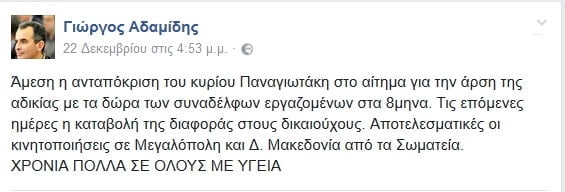 Η ανακοίνωση ότι δίνεται λύση στο πρόβλημα έχει προέλθει μόνο από μια ανάρτηση στο προσωπικό λογαριασμό του προέδρου της ΓΕΝΟΠ ΔΕΗ κ. Αδαμίδη στο Facebook