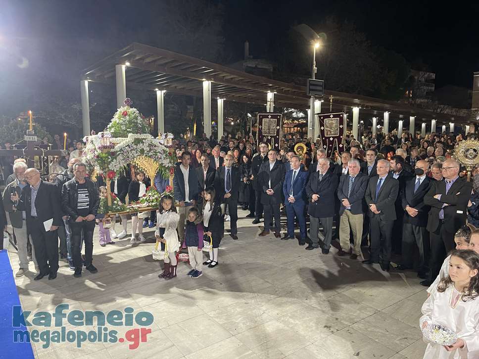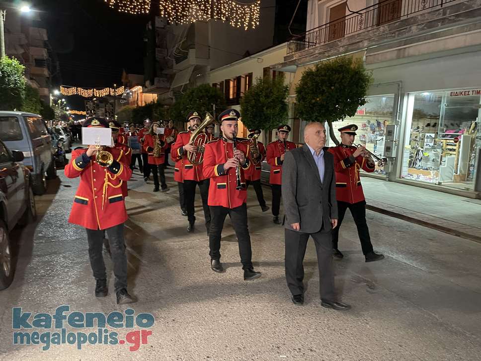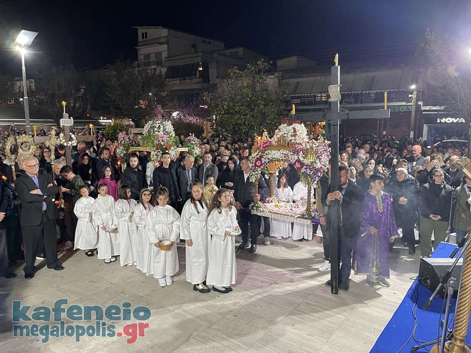 Η Φιλαρμονική Μεγαλόπολης συνόδεψε την Περιφορά του Επιταφίου παίζοντας πένθιμα εμβατήρια και στην πλατεία της Μεγαλόπολης συναντήθηκαν και οι τρεις Επιτάφιοι.