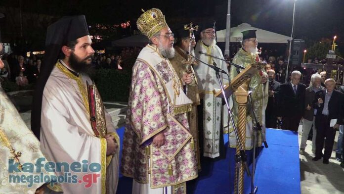 Η Φιλαρμονική Μεγαλόπολης συνόδεψε την Περιφορά του Επιταφίου παίζοντας πένθιμα εμβατήρια και στην πλατεία της Μεγαλόπολης συναντήθηκαν και οι τρεις Επιτάφιοι.