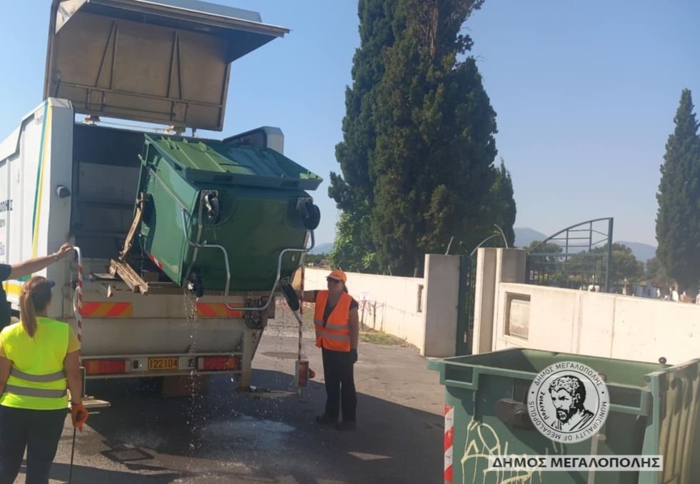 Η υπηρεσία καθαριότητας του Δήμου Μεγαλόπολης ξεκίνησε για ακόμη μια χρονιά το πλύσιμο των κάδων απορριμμάτων.