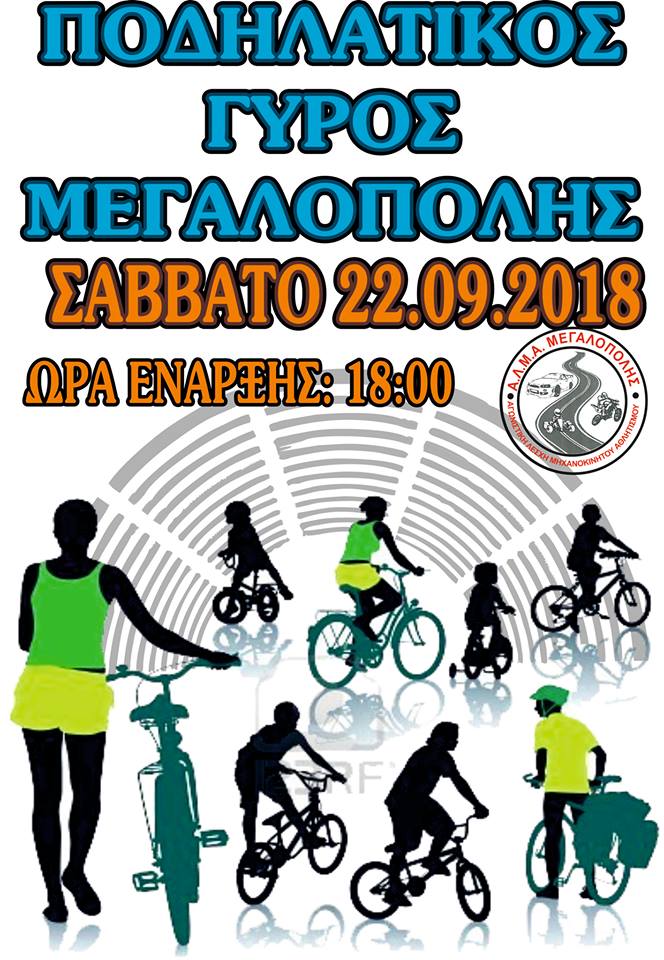 H Aγωνιστική Λέσχη Μηχανοκίνητου Αθλητισμού (Α.Λ.Μ.Α.) Μεγαλόπολης , διοργανώνει ποδηλατικό γύρο Μεγαλόπολης , το Σάββατο 22 Σεπτεμβρίου.