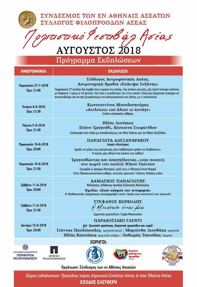 ΑρχικήΑΡΘΡΑΠολιτιστικό φεστιβάλ Ασέας - Πρόγραμμα εκδηλώσεων