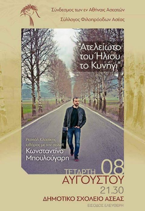 Στην Ασέα όμως το Σάββατο οι νότες του θα ακουστούν στους κάμπους και τα γύρω βουνά σε μια θεϊκή συναυλία !