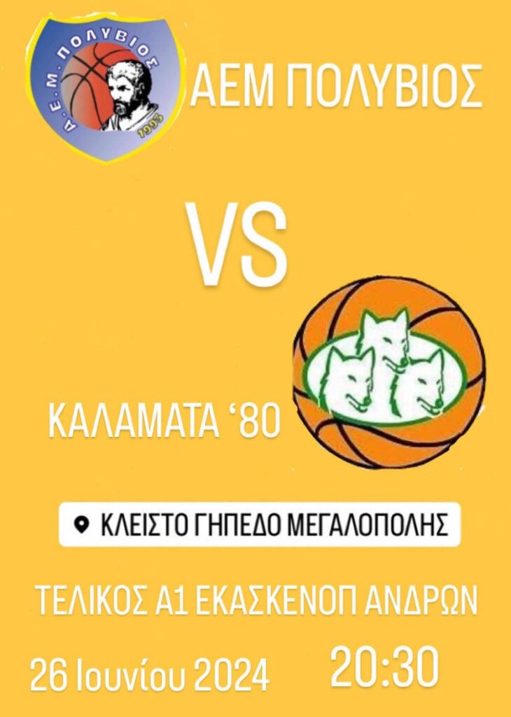 Πολύβιος – Καλαμάτα80 την Τετάρτη 26 Ιουνίου στο κλειστό Μεγαλόπολης