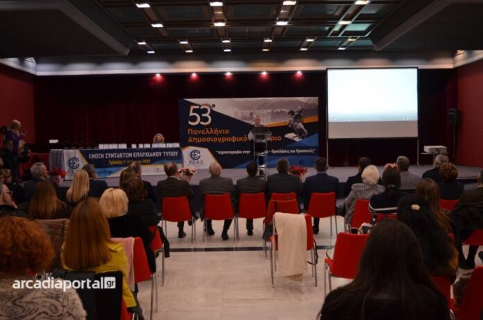 Η Ένωση Συντακτών Επαρχιακού Τύπου ξεκίνησε τις εργασίες  του 53ου Πανελλήνιου Δημοσιογραφικού Συνέδριου της με θέμα «Δημοσιογραφία στην Περιφέρεια – Προκλήσεις και Προοπτικές» που διεξάγεται στην Αρκαδία 17-19 Μαρτίου 2023 στο Αποστολοπούλειο Πνευματικό Κέντρο του Δήμου Τρίπολης.