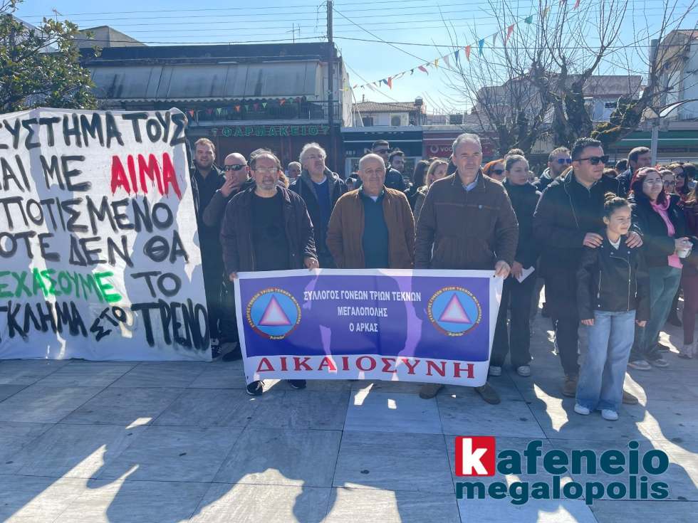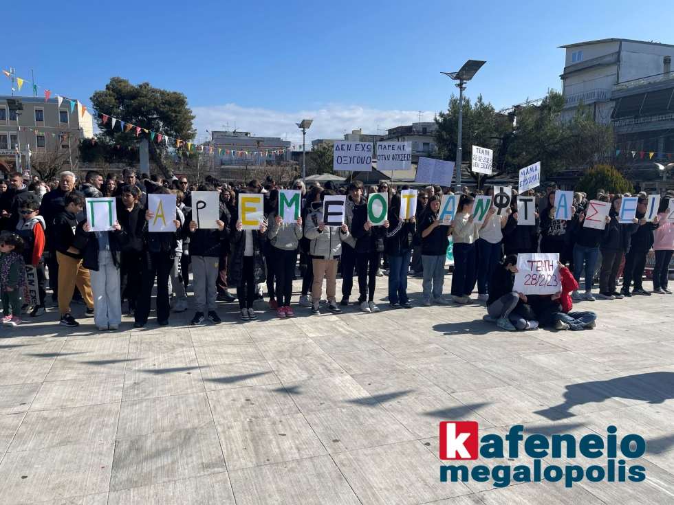 Μια πρωτοφανή συγκέντρωση πραγματοποιήθηκε σήμερα Παρασκευή 28 Φεβρουαρίου στη Μεγαλόπολης σε ένδειξη διαμαρτυρίας για την τραγωδία στα Τέμπη.