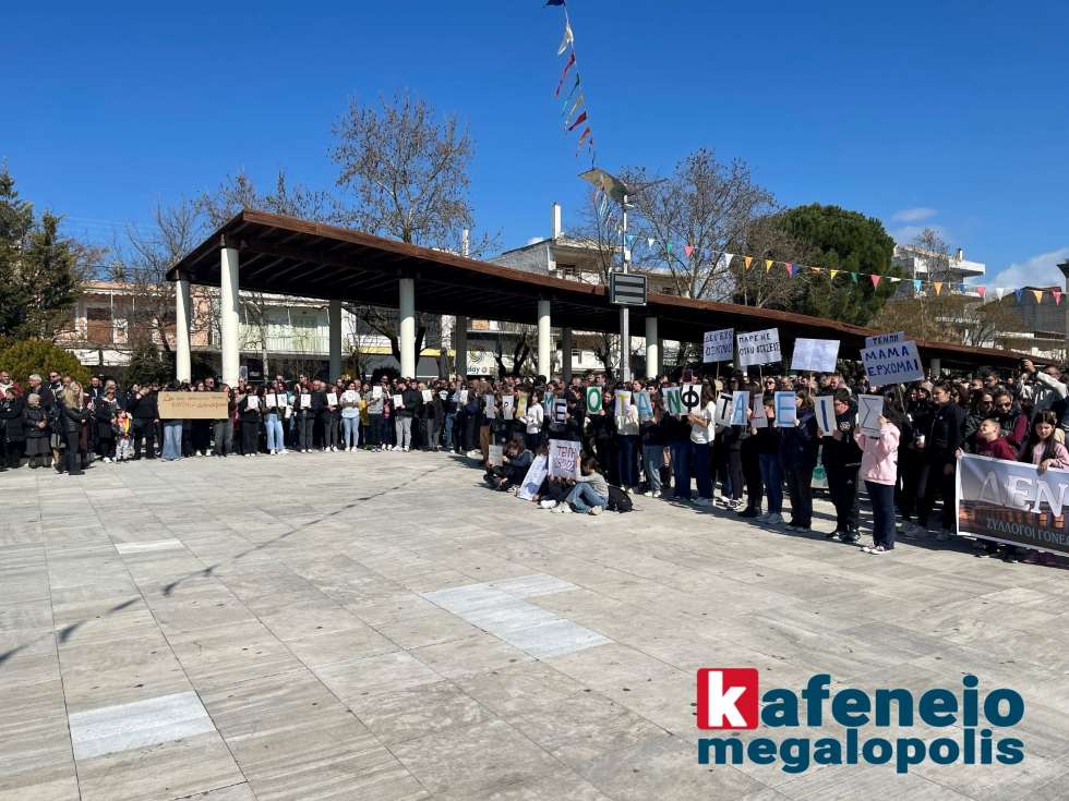Χιλιάδες πολιτών συμμετείχαν στην εκδήλωση στην κεντρική πλατεία , όπου μίλησαν ένας εκπρόσωπος Γονέων-Κηδεμόνων, μαθητές από το Γενικό και το Επαγγελματικό Λύκειο, εκπρόσωπος του Σωματείου Ενέργειας και ο Δήμαρχος Μεγαλόπολης.