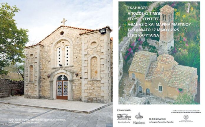 Πρόγραμμα εορτασμού του Πολιούχου της Τ.Κ. Καρύταινας, Αγίου Αθανασίου και εκδήλωση απόδοσης τιμών στους Ευεργέτες του Δήμου μας ΑΘΑΝΑΣΙΟ ΚΑΙ ΜΑΡΙΝΑ ΜΑΡΤΙΝΟΥ