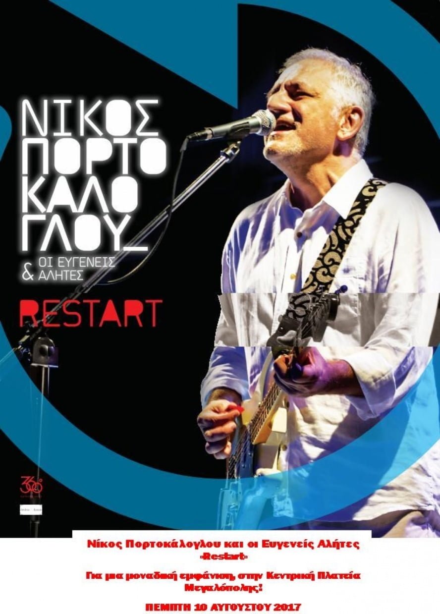 Σήμερα Πέμπτη 10 Αυγούστου στην κεντρική πλατεία Μεγαλόπολης , θα εμφανιστεί ο Νίκος Πορτοκάλογλου με το συγκρότημα του “Ευγενείς Αλήτες”.
