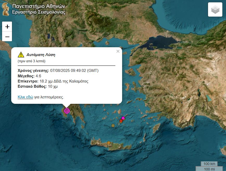 Σεισμική δόνηση έγινε πριν από λίγα λεπτά , στην περιοχή της Καλαμάτας.