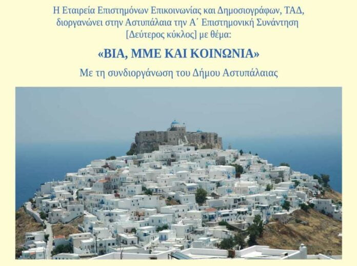Επιστημονική διημερίδα με θέμα «Βία, ΜΜΕ και Κοινωνία» διοργανώνει η Εταιρεία Επιστημόνων Επικοινωνίας και Δημοσιογράφων, στο πανέμορφο νησί των Δωδεκανήσων, την Αστυπάλαια 18 – 19 Σεπτεμβρίου 2022.