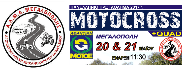 Το Σάββατο 20 και την Κυριακή 21 Μαΐου 2017 , η Aγωνιστική Λέσχη Μηχανοκίνητου Αθλητισμού (Α.Λ.Μ.Α.) Μεγαλόπολης με την έγκριση της ΑΜΟΤΟΕ, διοργανώνει τον 6ο αγώνα του Πανελληνίου Πρωταθλήματος Motocross 2017.