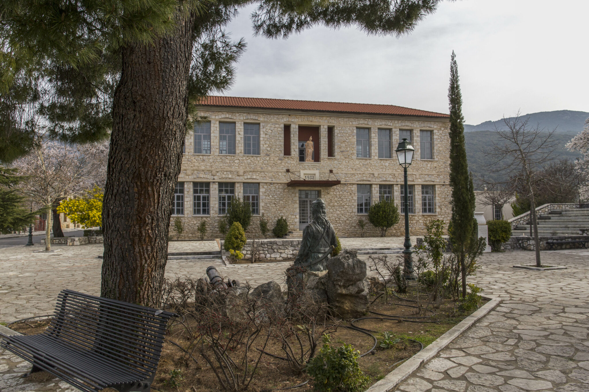 «Μα που έχουν πάει όλοι;». Είναι Τρίτη, 8 το πρωί και στη μεγάλη κεντρική πλατεία της Αγίας Τριάδας στο Ελληνικό δεν υπάρχει ψυχή. Περπατάμε λοιπόν μαζί με τις γάτες, που φαίνεται ότι ανήκουν στους μόνιμους κατοίκους, και φωτογραφίζουμε το εντυπωσιακό διώροφο σχολείο και το ηρώο. Το διδακτήριο αυτό χρονολογείται στο 1860 και είχε αρκετούς μαθητές στη διάρκεια των ετών, κυρίως το 1936 και το 1947-48. Αν και ανακαινισμένο, δεν λειτουργεί γιατί δεν υπάρχουν πια μαθητές, φαινόμενο που χαρακτηρίζει πολλά μικρά χωριά της Ελλάδας. Εντοπίσαμε δε κι ένα ακόμα διδακτήριο, τη Μαυράκειο Επαγγελματική Σχολή, στην είσοδο του χωριού από την πλευρά της Μεγαλόπολης. Ιδρύθηκε το 1965 και ήταν δωρεά του ευεργέτη Ιωάννη Μαυράκου.