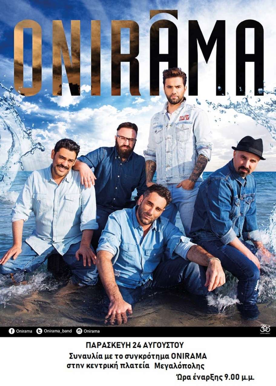 Οι πολιτιστικές εκδηλώσεις του Δήμου Μεγαλόπολης «Καλοκαίρι 2018» τελειώνουν με τη συναυλία του συγκροτήματος ONIRAMA στην κεντρική πλατεία Μεγαλόπολης , την Παρασκευή 24 Αυγούστου 2018 ώρα 9.00μ.μ.